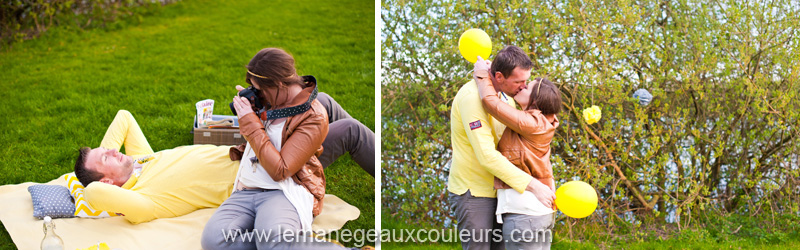 Il y a quelques semaines, j’ai revu Mélody et Tony, deux futurs mariés adorables et qui imaginent leur mariage petit budget avec une belle présence du photographe malgré tout… Pour eux, les photos sont importantes et cela fait très plaisir d’avoir été choisie 🙂 . Pour leur séance engagement, ils ont voulu bien préparer les choses et m’ont proposé une séance avec mise en scène. Au programme du jour il y avait une partie tandem dans le Vieux-Lille, et une autre en pique-nique au bord d’un lac. Les couleurs du mariage, comme vous le verrez assez vite sur les photos, sont le jaune et le gris. Mélody est très attachée à la photo, d’où le petit clin d’oeil pendant la séance, et est également scrappeuse. C’est d’ailleurs elle qui réalise les pochettes pour les séances et les mariages 2013 qui commencent à arriver chez les clients… J’ai hâte de pouvoir vous montrer tout cela, mais j’hésite encore avec le packaging mariage parce que j’aime bien que les mariés soient surpris quand ils reçoivent la pochette… 🙂
