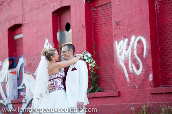 Il y a quelques semaines je vous ai présenté le reportage du mariage d’Amélie et John. Comme pour la séance Jeunes Mariés de Natacha et Christophe, nous n’avons pu faire la séance qu’un mois après le mariage à cause de la météo. Habituellement, je n’aime pas beaucoup les endroits désaffectés. Disons que cela ne va pas vraiment avec mon style photographique, mais certains photographes adorent ça et cela se voit. Mais quand ces amoureux m’ont proposé ce village abandonné en Belgique, qu’ils m’ont montré quelques photos, cela m’a tout de suite intéressée, et pour cause : c’est rempli de couleurs !.. Tous les trois nous avons donc trouvé ce que nous cherchions dans cet endroit : John voulait un lieu qui sortait de l’ordinaire, Amélie souhaitait des photos romantiques malgré le lieu, et moi j’ai pu ajouter à cela mon envie de couleur (ben oui c’est pas Le Manège aux Couleurs pour rien 😉 ). Seul petit bémol de la séance : je me suis fait dévorer par les moustiques à la fin de la séance 😉 Mais je suis ravie des photos, donc ça en valait la peine…