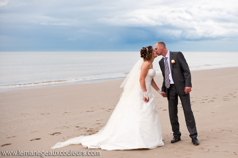 Sarah et Sébastien étaient déjà passés devant mon objectif en fin d’année dernière, pour leur séance engagement en studio. Je les ai retrouvés directement à la mairie le jour de leur mariage, du côté de Dunkerque, puis est venue la cérémonie religieuse. Puisque nous étions très près de la mer, les mariés et moi nous étions mis d’accord lors de nos précédents échanges, la séance couple s’est faite sur la plage de Bray-Dunes. Malheureusement ce jour-là le soleil n’était pas au rendez-vous (vous le verrez vous-même, la sortie de l’église fut épique !), et c’est donc sous les nuages que nous avons fait la séance des nouveaux mariés à la mer. Mais les nuages ne me gênent pas, je trouve que ça donne aussi de très jolis effets… 🙂