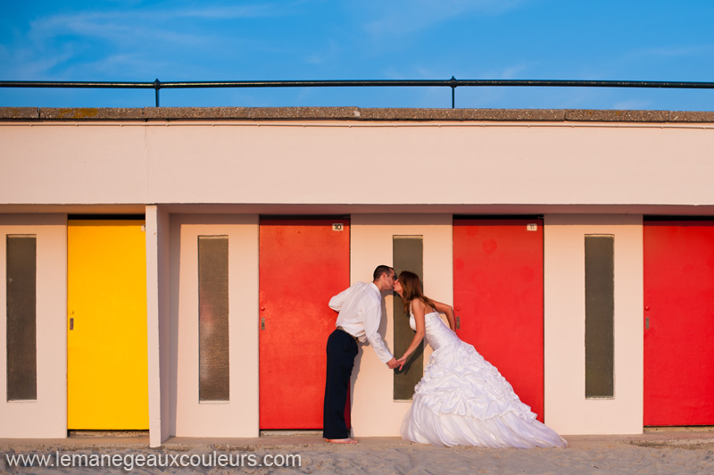 Dans le dernier article je vous ai montré le reportage du mariage d’Aurélie et Olivier. Voici aujourd’hui leur séance Jeunes Mariés, réalisée quelques jours après le mariage au Touquet-Paris-Plage. Les deux amoureux en ont profité pour passer un beau week-end ensemble dans un appartement sur la côte. Nous avons eu de la chance car cette fois la météo était très bonne… Cela nous a permis d’avoir de très jolies photos du coucher de soleil, qui ne s’est pas caché derrière les nuages au moment de s’en aller… Nous avons commencé par quelques photos sur le carrousel du Touquet pour ensuite nous rendre sur la plage et même carrément DANS l’eau 🙂 .
