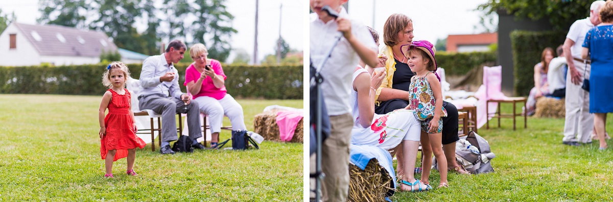 Avec Marie et Frédéric, nous avons tout de suite accroché, dès la première rencontre. Le jour de leur mariage, c’était comme si je faisais partie de leur famille. J’ai été accueillie à bras ouverts par leurs proches, tous m’ont laissé entrer dans ce cocon familial comme s’ils me connaissaient déjà depuis longtemps. Et en repartant du mariage, j’ai été très touchée par la maman de Frédéric, qui m’a dit que j’étais bien plus qu’une prestataire, et qu’elle était ravie que je sois auprès d’eux pour cette belle journée. Marie et Frédéric ont réalisé une décoration pleine de couleurs, sur le thème champêtre, avec des banderoles de fanions, des fleurs sauvages de différentes couleurs, des ballots de paille etc etc. Coup de cœur pour la robe de mariée Stéphanie Wolff et le bouquet de fleurs de toutes les couleurs, les petites touches de liberty, et bien sûr pour les banderoles de fanions ! La cérémonie civile a été présidée par le papa de la mariée, d’où la grande émotivité de Marie… La soirée a eu lieu à la Ferme de St Humbert, à Salesches, près de Le Quesnoy.