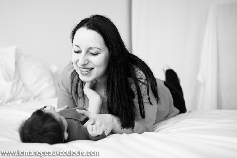 Je vous en avais parlé il y a un petit moment déjà, en février dernier j’ai passé une journée entière avec Lisa Tichané à discuter photo et plus particulièrement photos de bébé et enfants. Pour cette journée de formation, Lisa avait prévu une première mini séance photo Bébé à domicile qui me permettrat de photographier un bébé d’un mois et une autre avec un bébé de cinq mois. Aujourd’hui, voici donc Romain, un mois, qui nous a servi de modèle le matin, avec sa grande sœur et sa maman. Il s’agit de photos réalisées au domicile de Lisa, pour une séance en famille des plus naturelles, une séance bébé telle que je les réalise désormais. Plus de bébé posé, place aux photos pleines de vie, qui vous représentent dans votre vie quotidienne, à la maison et en famille.