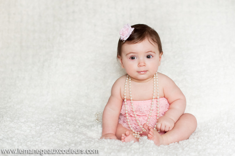 Pour terminer cet article, voilà deux photos « avant-après ». La première image a été prise lors de la séance Nouveau-Né de Mia, et la seconde un peu plus de 6 mois plus tard… J’aime beaucoup voir le changement d’une image à l’autre…